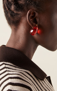Since his debut, designer Matthieu Blazy has leaned into Bottega Veneta's foundations, delivering new iterations of brand signatures. These lobe-hugging earrings feature teardrop-shaped resin drops with 18k gold-plated sterling silver caps and posts. PRODUCT DETAILS - Post fastening for pierced ears - Composition: resin, 18k gold-finished sterling silver - Designer color: Hibiscus - Made in Italy SIZE & FIT - This item measures 30 x 20 mm