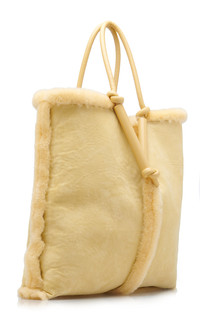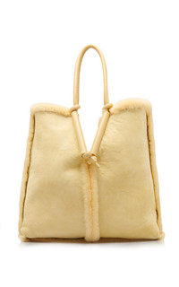 Defined by its V-shaped knotted padded leather handles, Bottega Veneta's tote bag nods to house codes. It's been crafted in Italy from fluffy shearling into a generously sized silhouette to house all your weekend essentials. Try it reversed to show off the sueded interior. PRODUCT DETAILS - Remove the interior leather pouch to carry as a clutch. - Open top - Composition: shearling - Designer color: Teddy Gold - Made in Italy SIZE & FIT - This item measures approximately 19 x 16.5 x 4.75" - Handle drop measures approximately 16.5"