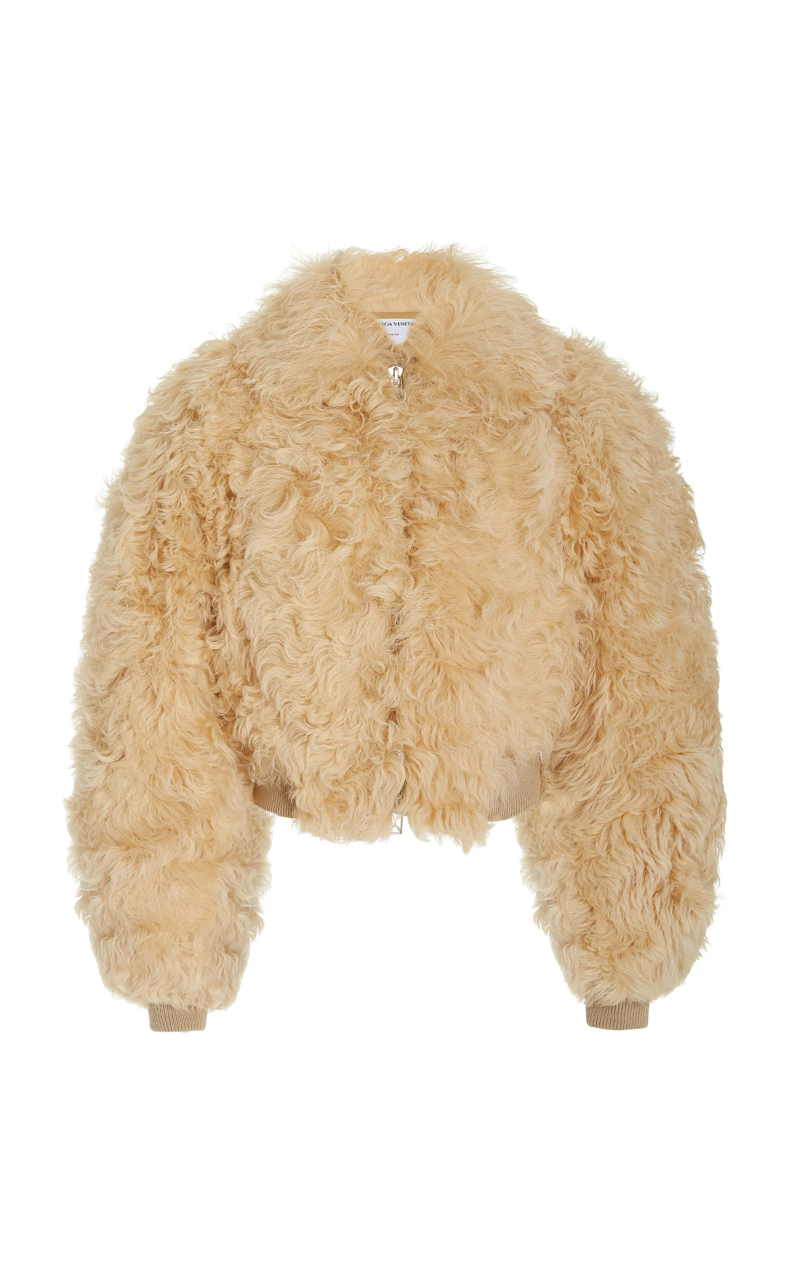 From knitted suiting sets to a colorful update on cult hit accessories, Daniel Lee's newest collection puts a high fashion lens on everyday luxury — one that's ready for a new reality. A perfect finishing touch to casual cold-weather looks, this jacket has a bomber-like silhouette beautifully crafted from curly shearling that's so soft and plush. Wear yours over one of the knit sets from this season. PRODUCT DETAILS - Zip fastening through front - Composition: shearling - Designer color: Porridge - Specialist clean - Imported SIZE & FIT - This style fits true to size - We suggest taking your normal size