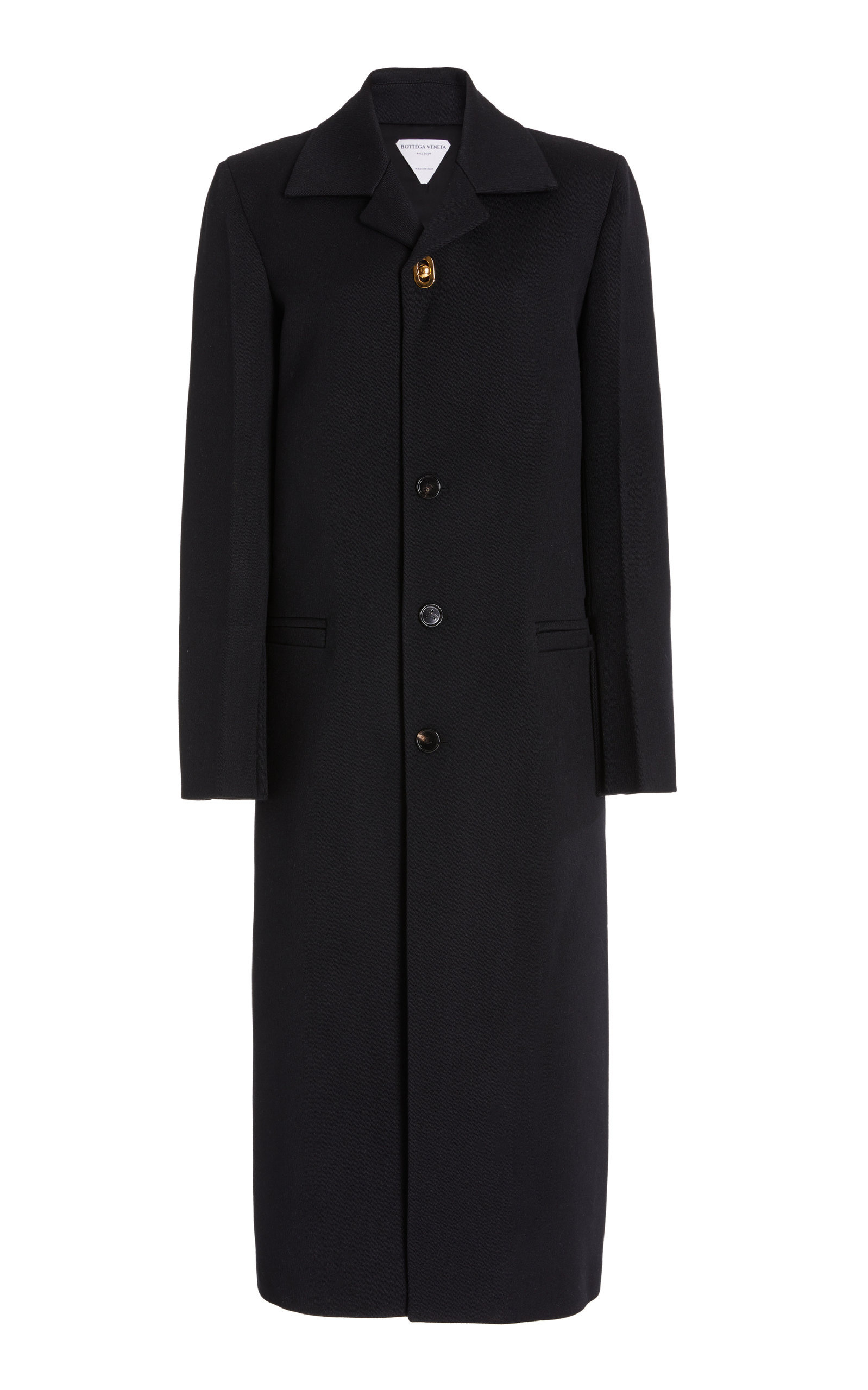 Bottega Veneta's single-breasted coat is decorated with a gold-tone metal slider along the placket — a signature detail from the Fall '20 collection that nods to the opulent door handles found in Milan. It's been classically tailored in Italy into a boxy longline silhouette from a stretch wool-blend twill. Accessorize with one of the label's coveted 'Pouch' bags. PRODUCT DETAILS - Button fastenings through front - Composition: 91% wool, 8% polyamide, 1% elastane; - Dry clean - Made in Italy SIZE & FIT - This style fits true to size - We suggest taking your normal size