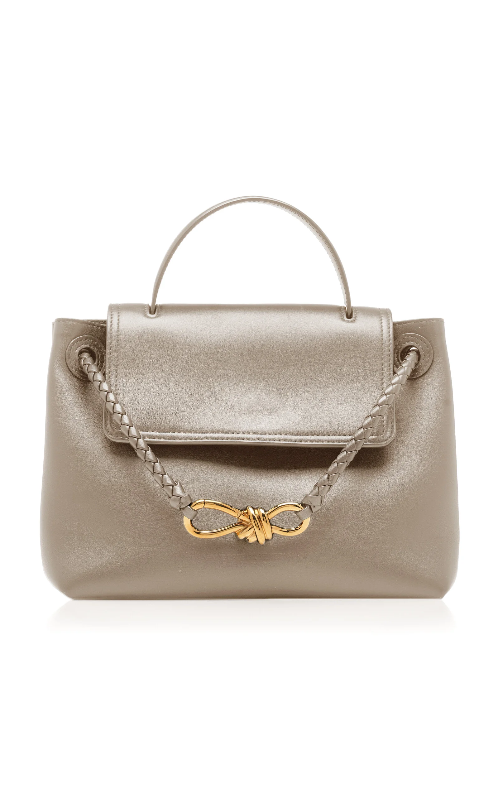 Bottega Veneta (meaning "Venetian Artisanal Workshop" in its native Italian) unites different people, ideas, and perspectives with an unwavering commitment to excellence and a unique vision of luxury. With solid foundation, each season builds off the other, delivering new iterations of coveted house signatures with contemporary, yet timeless, flare. Top handle bag in silky calfskin leather with two-way flap and signature knot detail. Formed to a more compact size to lighten your load. PRODUCT DETAILS - Clasp fastening - Composition: silky calfskin leather - Made in Italy SIZE & FIT - Measures approximately 18 x 25 x 10.5cm - Handle drop: 7cm