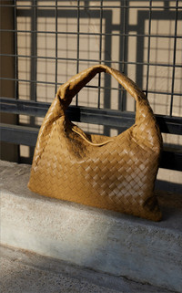 Since his debut, designer Matthieu Blazy has leaned into Bottega Veneta's foundations, delivering new iterations of brand signatures. Inspired by its trademark hobo bags, the 'Hop' style is crafted from intrecciato-woven leather that's left unlined to give it a slouchy feel. PRODUCT DETAILS - Magnetic fastening - Composition: Venetian calfskin leather - Designer color: Dark Praline - Made in Italy SIZE & FIT - This item measures approximately 24 x 44 x 12cm - Handle drop measures approximately 18cm