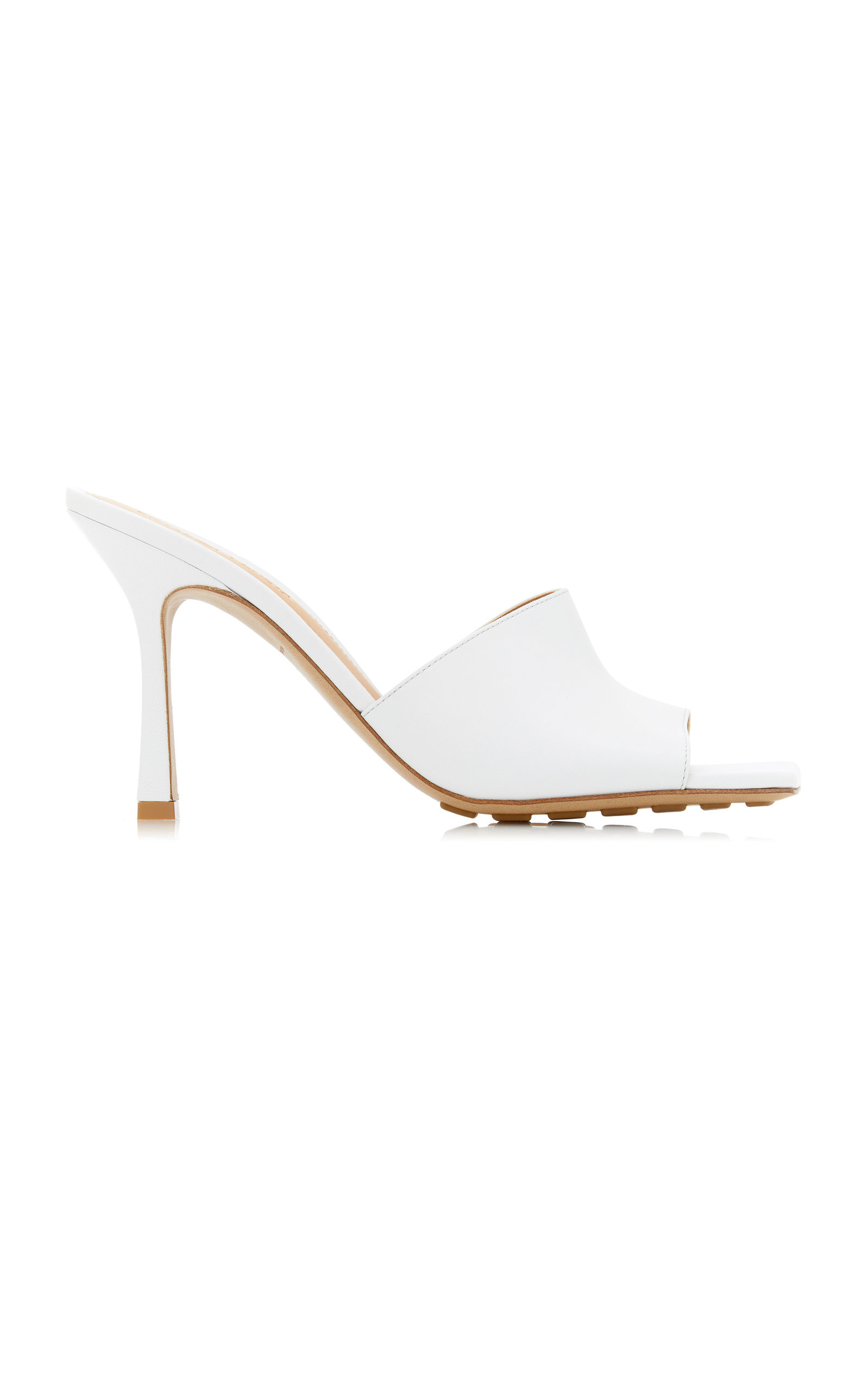 Bottega Veneta's square-toe shoed shoes have become a cult favorite — we love them for their '90s-style minimalism. This slide sandal iteration is made from a supple smooth leather that's designed to stretch comfortably and is set on an elegant slim stiletto heel. The rubber-gripped soles will ensure easy footing. PRODUCT DETAILS - Slip on - Heel measures approximately 90mm/ 3.5 inches - Composition: leather - Made in Italy