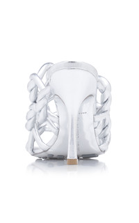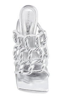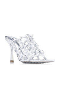 Fall '22 marks Matthieu Blazy's official debut as the Italian label's creative director (he was formerly the ready-to-wear director after stints at Balenciaga, Calvin Klein, and Celine). Leaning into the brand's foundations, he delivers new iterations of house signatures, like the intreccio weave. If you're a style enthusiast like us, then you've undoubtedly seen the 'Stretch Sandals' on your favorite streetstyle stars and editors. This iteration features a signature square-toe silhouette made from knotted metallic leather. The cushioned soles add extra comfort and support. PRODUCT DETAILS - Heel height measures approximately 3.75 inches - Slip on - Composition: leather - Made in Italy
