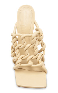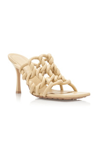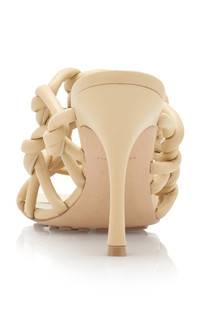 Since his debut last year, designer Matthieu Blazy has leaned into Bottega Veneta's foundations, delivering new iterations of house signatures. These mule sandals are crafted from buttery nappa leather that's set atop a slim heel. Expertly designed with a gripped sole, this pair is detailed with a sharp squared toe and woven vamp. PRODUCT DETAILS - Heel height measures approximately 90mm / 3.5" - Slip on - Composition: lamb leather - Made in Italy