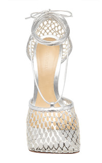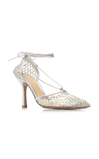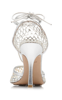 If you're a style enthusiast like us, then you've undoubtedly seen the 'Stretch Sandals' on your favorite streetstyle stars and editors. This lace-up iteration features the signature square-toe silhouette with a netted construction trimmed with glossy metallic lambskin leather. The cushioned soles add extra comfort and support. PRODUCT DETAILS - Heel measures approximately 90mm/ 3.5 inches - Self-tie fastening at ankle - Composition: lambskin leather - Made in Italy