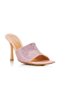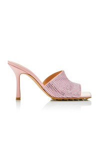 From glossy separates to sequin party pieces, as well as updates on their cult hit accessories, Bottega Veneta's latest serves as a reminder of the pleasures to be found in dressing up again. This 'Sparkle Slide' iteration is made from crystal encrusted satin that's designed to stretch comfortably and is set on an elegant slim stiletto heel. The rubber-gripped soles will ensure easy footing. PRODUCT DETAILS - Heel height measures approximately 90mm / 3.5" - Slip on - Composition: satin - Made in Italy