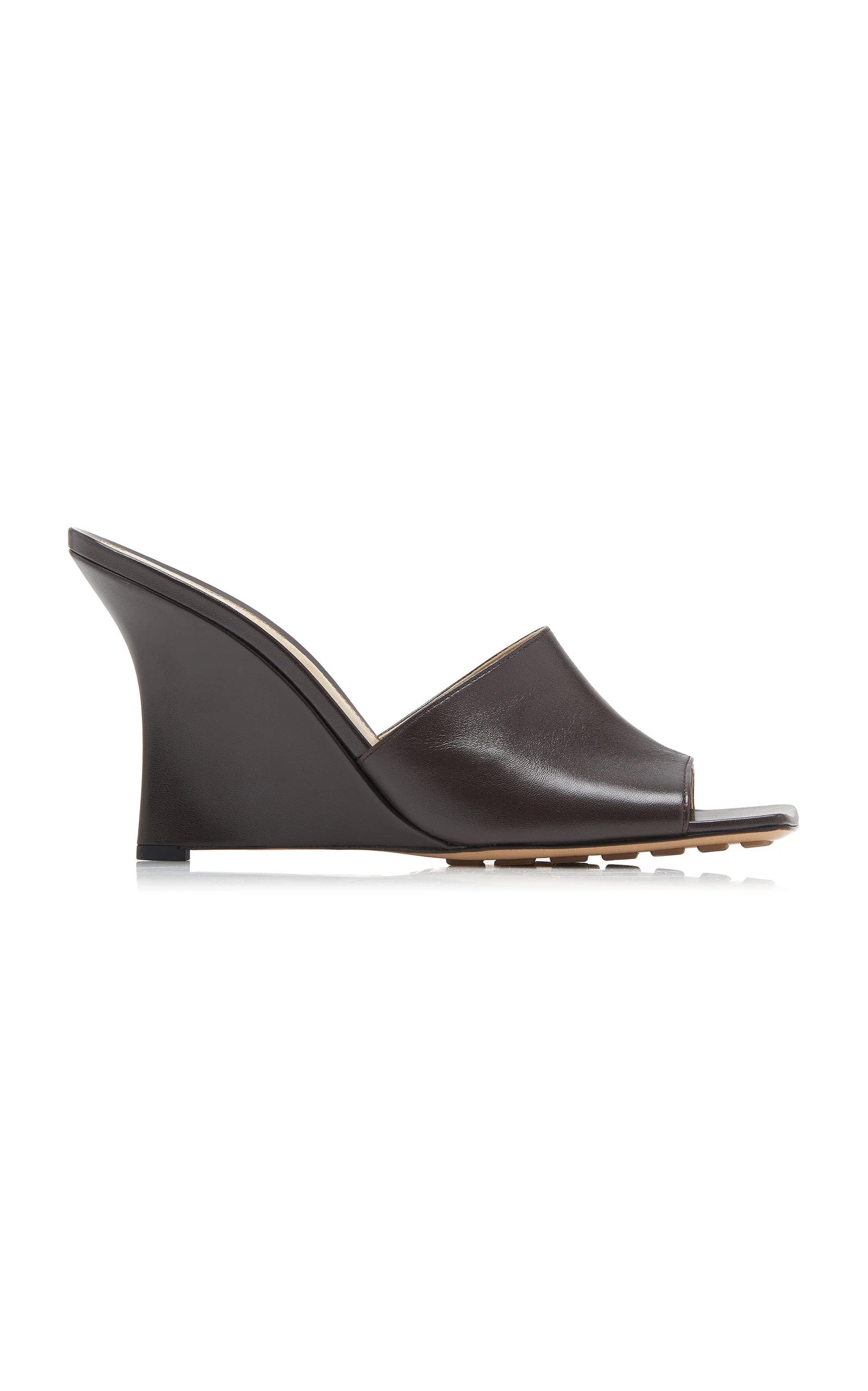 Bottega Veneta's square-toe shoed shoes have become a cult favorite — we love them for their '90s-style minimalism. Made from smooth lambskin leather that's designed to stretch comfortably, this iteration features a comfortable wedge that curves like a slender stiletto. The rubber-gripped soles will ensure easy footing. PRODUCT DETAILS - Heel measures approximately 90mm/ 3.5 inches - Slip on - Composition: lambskin leather - Made in Italy SIZE & FIT - Fits small to size, our fit specialist recommends taking one size up