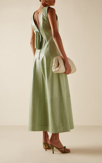 Stepping away from reinventing house codes, Bottega Veneta Creative Director Matthieu Blazy left Italy in search of inspiration for Spring '24. "The idea was blending worlds. We took inspiration literally from all around the world: South America, Southeast Asia, Russia, Brittany, Sicily . . . we tried to blend them to create some kind of new culture," he told Vogue of the collection. This calf-length style has a figure-flattering A-line silhouette made from buttery lambskin with knotted tassels at the back that nod to house codes. PRODUCT DETAILS - Spring '24 - Concealed zip fastening along back - Composition: 100% lambskin leather - Designer color: Fresh Mint - Specialist clean - Made in Italy SIZE & FIT - Our model is 178cm/ 5'10" and wearing a size IT 38 - Designed for a slim fit