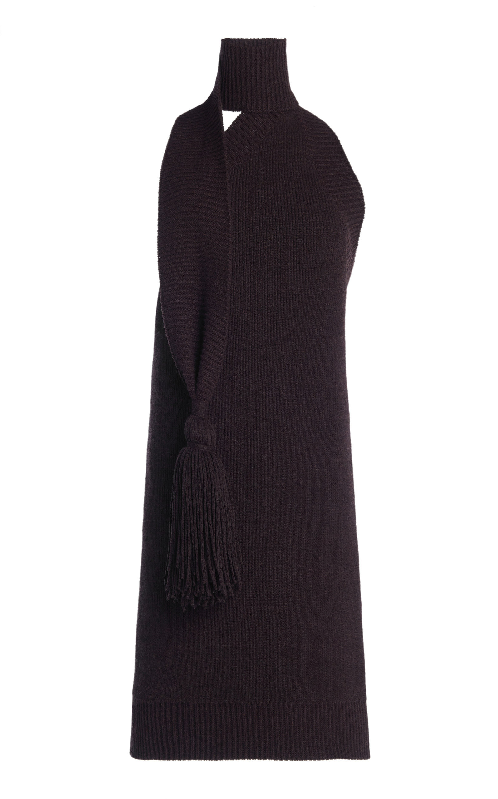 From knitted suiting sets to a colorful update on cult hit accessories, Bottega Veneta's Fall '21 collection serves as a reminder of the pleasures to be found in dressing up again. Knit from an in-house developed Shetland wool, this dress features a tasseled halter neckline that drapes around the neck like a scarf. Accessorize with one of the label's cult bags in a matching shade. PRODUCT DETAILS - Slip on - Composition: 100% wool - Designer color: Fondant - Dry clean - Made in Italy SIZE & FIT - Our model is 180cm/ 5'11" and is wearing a size Small - Fits small to size, our fit specialist recommends taking one size up