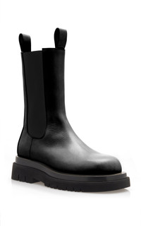 Bottega Veneta's Resort '21 collection emerged from this pandemic as a must-have designer, championing contemporary silhouettes with an emphasis on comfort. These 'Lug' leather ankle boots feature the brand's signature chunky silhouette with round toes, elasticized sides, and pull-tabs at uppers—take style cues from the brand by pairing yours with a black mini dress. PRODUCT DETAILS - Heel height measures approximately 50mm/ 2"; Platform height measures approximately 30mm/ 1.2" - Pull on - Composition: 100% calfskin - Made in Italy