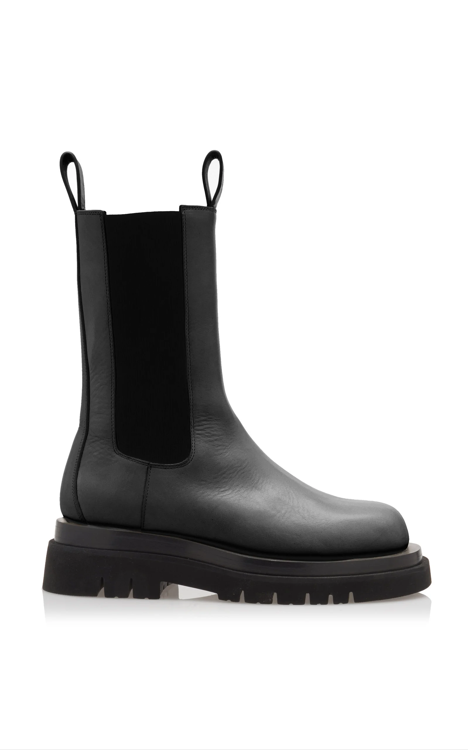 Bottega Veneta's Resort '21 collection emerged from this pandemic as a must-have designer, championing contemporary silhouettes with an emphasis on comfort. These 'Lug' leather ankle boots feature the brand's signature chunky silhouette with round toes, elasticized sides, and pull-tabs at uppers—take style cues from the brand by pairing yours with a black mini dress. PRODUCT DETAILS - Heel height measures approximately 50mm/ 2"; Platform height measures approximately 30mm/ 1.2" - Pull on - Composition: 100% calfskin - Made in Italy