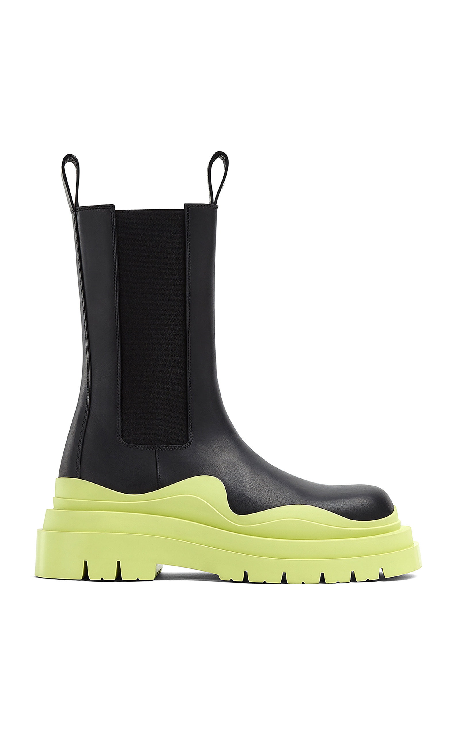 Chunky lug-soled boots have been dominating this season and we have Bottega Veneta to thank for that — 'The Tire' boots were one of the first iterations to put the look on the map. This taller style has been meticulously crafted in Italy from smooth leather into a calf-length silhouette with two handy pull tabs. Wear them to toughen up pretty midi dresses. PRODUCT DETAILS - Heel height measures approximately 50mm/ 2"; Platform height measures approximately 30mm/ 1.2" - Pull on - Composition: calfskin leather - Made in Italy