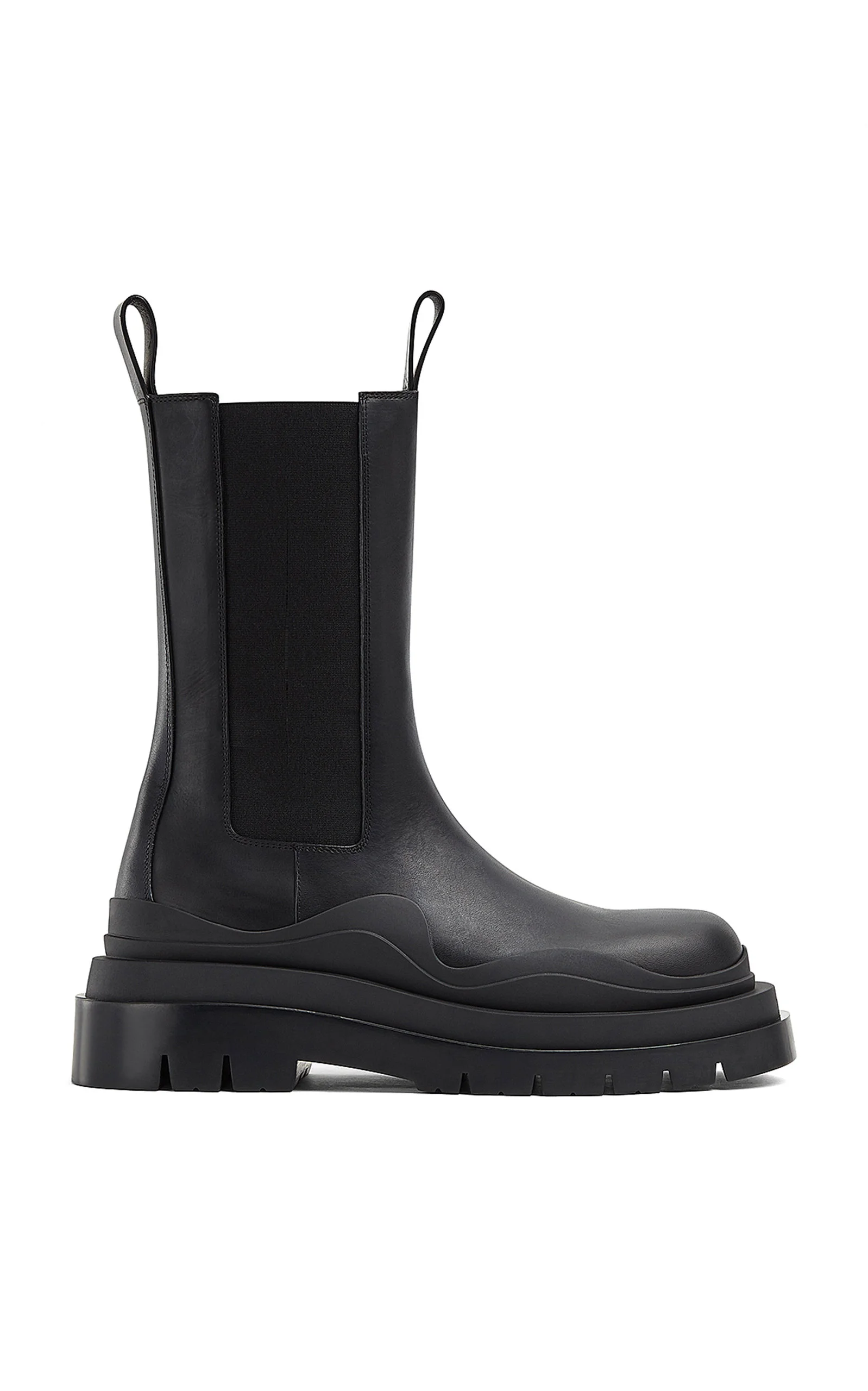 Chunky lug-soled boots have been dominating this season and we have Bottega Veneta to thank for that — 'The Tire' boots were one of the first iterations to put the look on the map. This taller style has been meticulously crafted in Italy from smooth leather into a calf-length silhouette with two handy pull tabs. Wear them to toughen up pretty midi dresses. PRODUCT DETAILS - Heel height measures approximately 50mm/ 2"; Platform height measures approximately 30mm/ 1.2" - Pull on - Composition: calfskin leather - Made in Italy