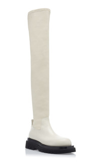 Made with the brand's signature chunky sole, Bottega Veneta's over the knee boots will take your autumnal wardrobe to chic new heights. Cast from smooth black leather, they're infused with the modern sensibilities and expert craftsmanship that make each piece so lust-worthy. Show them off with leather shorts or knitted midi dresses. PRODUCT DETAILS - Slip on - Composition: leather - Made in Italy