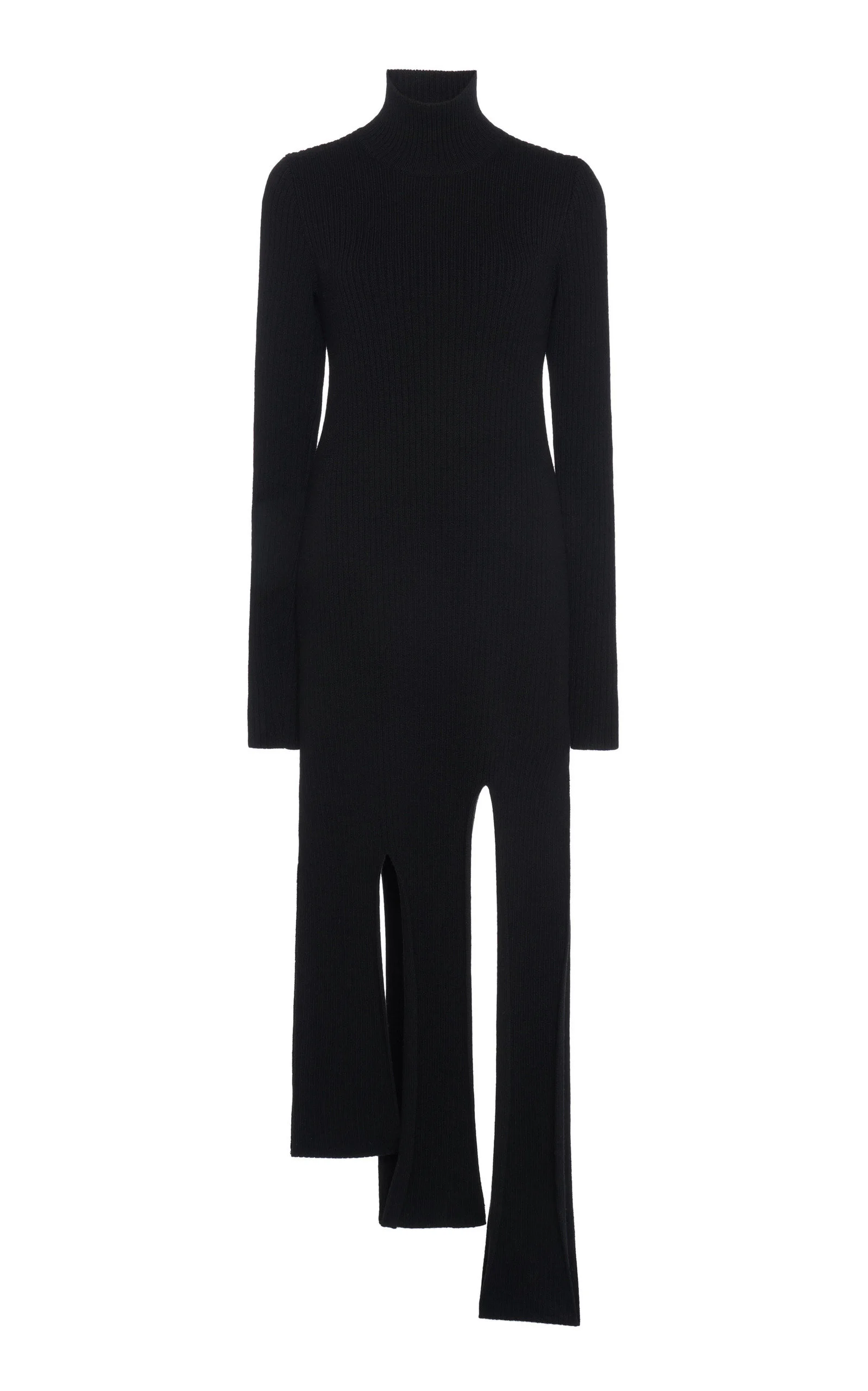 From knitted suiting sets to a colorful update on cult hit accessories, Bottega Veneta's newest collection puts a high fashion lens on everyday luxury — one that's ready for a new reality. Fitted with a turtleneck in a ribbed knit, this mini features an asymmetrical hem formed of wide fringed panels. Balance the high slits with chunky leather boots for a cool directional look. PRODUCT DETAILS - Slip on - Composition: medium weight slash ribs - Dry clean - Imported SIZE & FIT - Our model is 180cm / 5'11"and is wearing a size Small - This style fits true to size - We suggest taking your usual size