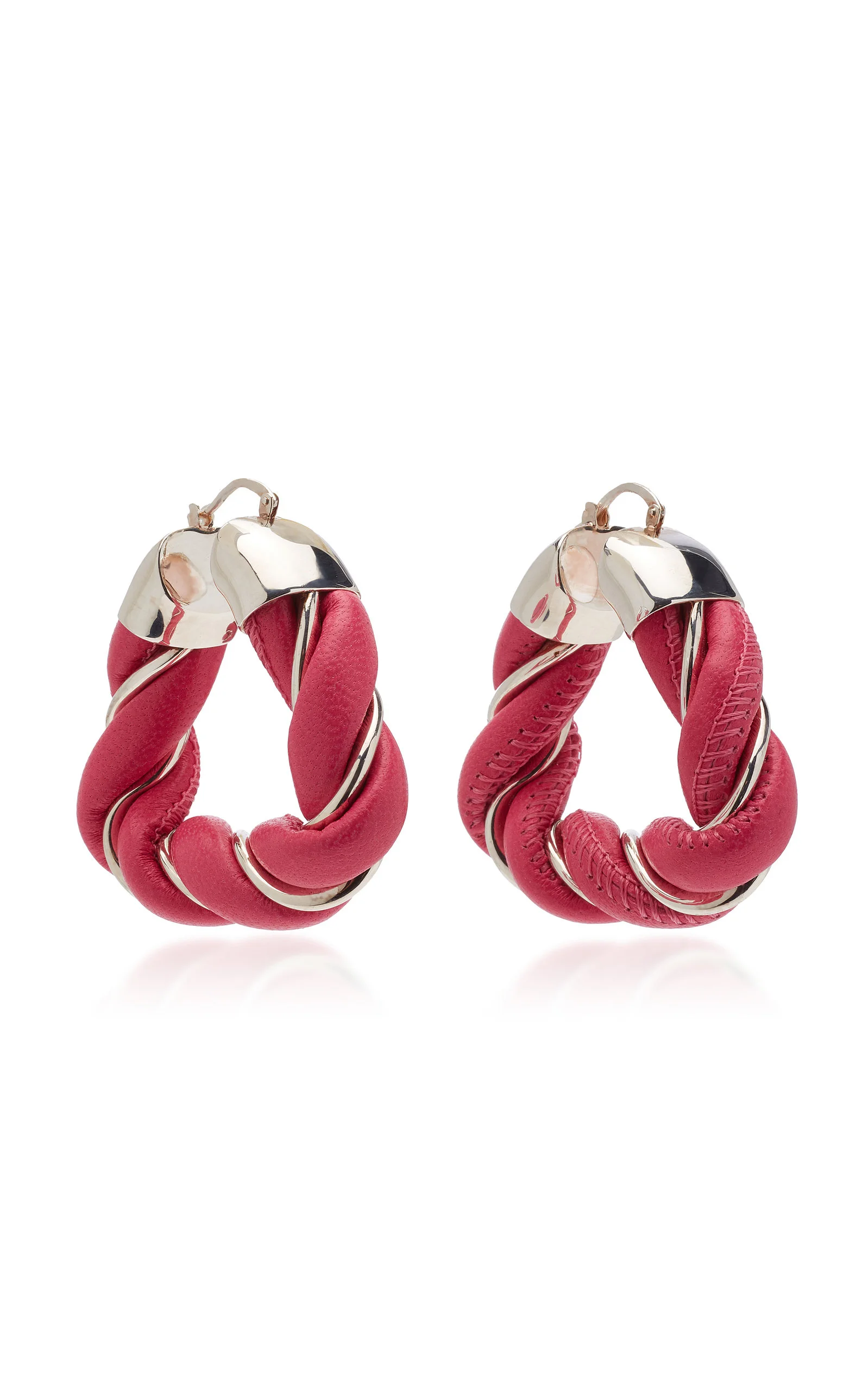 Twist Triangle Leather-Trimmed Sterling Silver Earrings pink