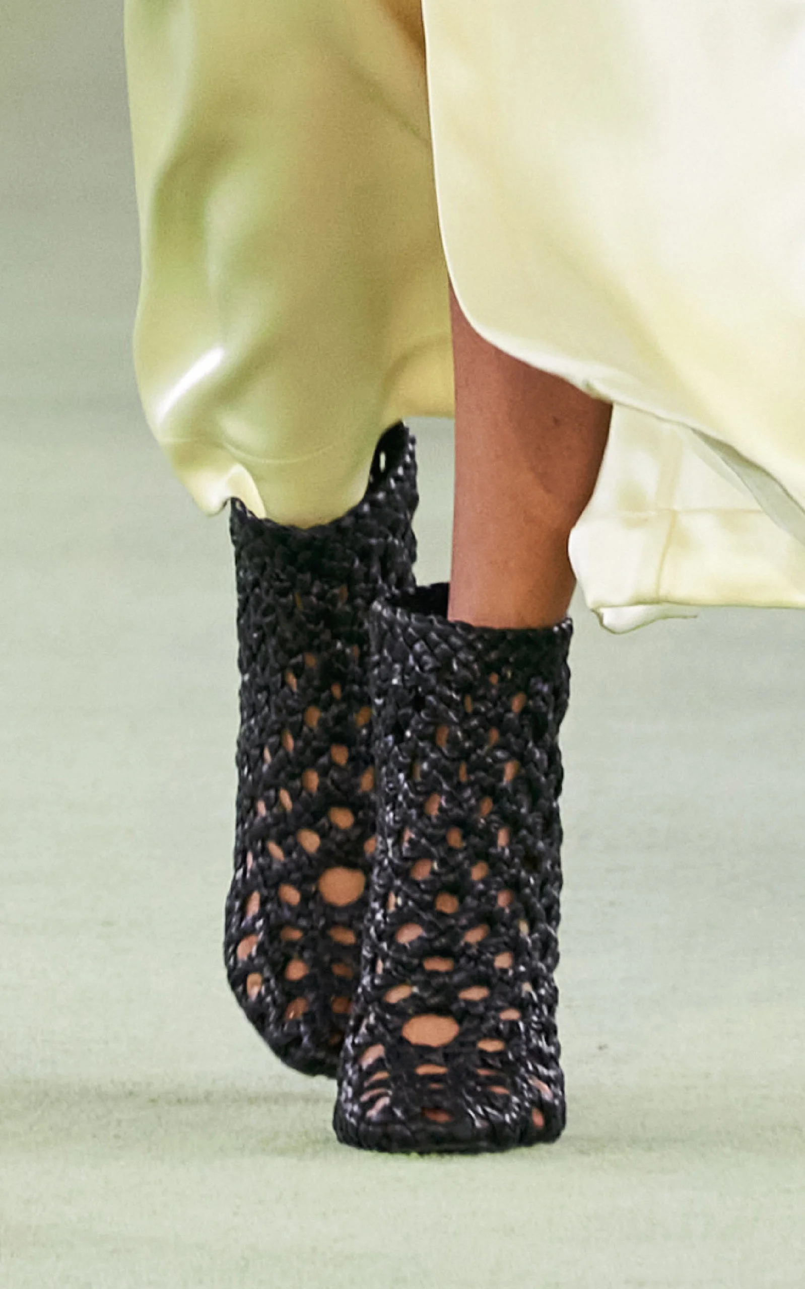 PRODUCT DETAILS - Ankle boot silhouette, open weave body, pointed toe, tapered heel - Slip on - Composition: V2DS0 padded open weave - Professionally clean - Made in Italy SIZE & FIT - Heel height measures approximately 4"