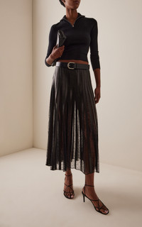 Brandon Maxwell continues to reinvent sophisticated staples this season, as always in a timeless yet contemporary manner. Reinterpreting the sheer trend, the Texan designer employs floral-embroidered lace as a base and strips of soft Nappa leather to create the ‘Alix’. The A-line silhouette sits at the waist and falls to the ankle, leaving room for cute heels or ballet flats. PRODUCT DETAILS - Fall/Winter ‘25 - Pull on - Composition: fabric1: 100% nappa leather; fabric2: 100% nylon - Specialist clean - Made in the USA SIZE & FIT - Our model is wearing a size 2 - Model is 5'9.5" with a 32" bust, 24" waist, and 35.5" hip - Fits true to size, our fit specialist recommends taking your normal size