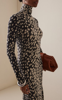 Brandon Maxwell continues to reinvent sophisticated staples this season, as always in a timeless yet contemporary manner. The ‘Camille’ covers the frame in finely knit cashmere. The sleek profile is woven to a slim fit with a high roll neck and train hem. Complement the animal print with a tonal leather handbag and silver accessories. PRODUCT DETAILS - Fall/Winter ‘25 - Slip on - Composition: 100% cashmere - Dry clean - Designer Color: Snow Leopard - Imported