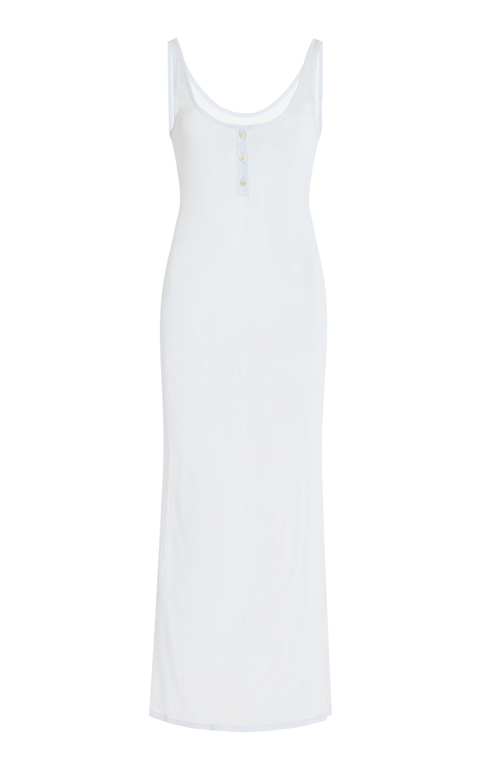 Brandon Maxwell’s proposition for the Spring ’25 collection: to foster a feeling of calm and confident nonchalance. Made from a fine knit, this midi has a simple tank silhouette with a henley neck. PRODUCT DETAILS - Spring '25 - Please note: Additional pieces are for styling purposes only - Slip on - Composition: 100% viscose - Dry clean only - Imported SIZE & FIT - Our model is wearing a size Small - Model is 5'10" with a 31" bust, 23.5" waist, and 33.5" hip - Designed for a regular fit