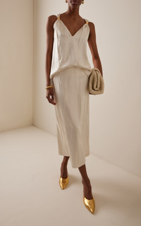 Brandon Maxwell continues to reinvent sophisticated staples this season, as always in a timeless yet contemporary manner. Constructed with textured satin, the label’s elevated tank top is relaxed with a plunging V-neck and metallic detailing beneath the decolletage. Tuck into jeans or satin skirts for a polished finish. PRODUCT DETAILS - Fall/Winter ‘25 - Slip on - Composition: 100% polyester - Dry clean - Imported