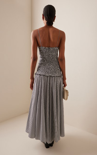 The Josie shirred striped cotton midi dress Gray