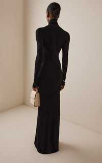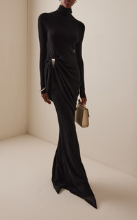 Brandon Maxwell continues to reinvent sophisticated staples this season, as always in a timeless yet contemporary manner. Made with a midweight ribbed knit, the ‘Lainey’ gown has a minimal profile – a simple roll neck and close fit through the frame – elevated by draping across the front and silver-tone hardware. Accessorize the look with metallic cuffs and drop earrings. PRODUCT DETAILS - Fall/Winter ‘25 - Slip on - Composition: 100% viscose - Dry clean - Imported