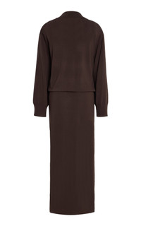 Brandon Maxwell continues to reinvent sophisticated staples this season, as always in a timeless yet contemporary manner. Emulating two-piece, this maxi dress has a polo-inspired upper – completed by a quarter zip fastening – and a column-esque skirt that grazes the floor. It’s made with a compact knit, ideal for wearing in between seasons underneath a lightweight trench. PRODUCT DETAILS - Resort ‘26 - Zip fastening - Composition: 75% viscose, 15% polyester, 9% polyamide, 1% elastane - Dry clean - Designer Color: Truffle - Imported