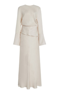 The Violet tiered satin-twill gown Ivory