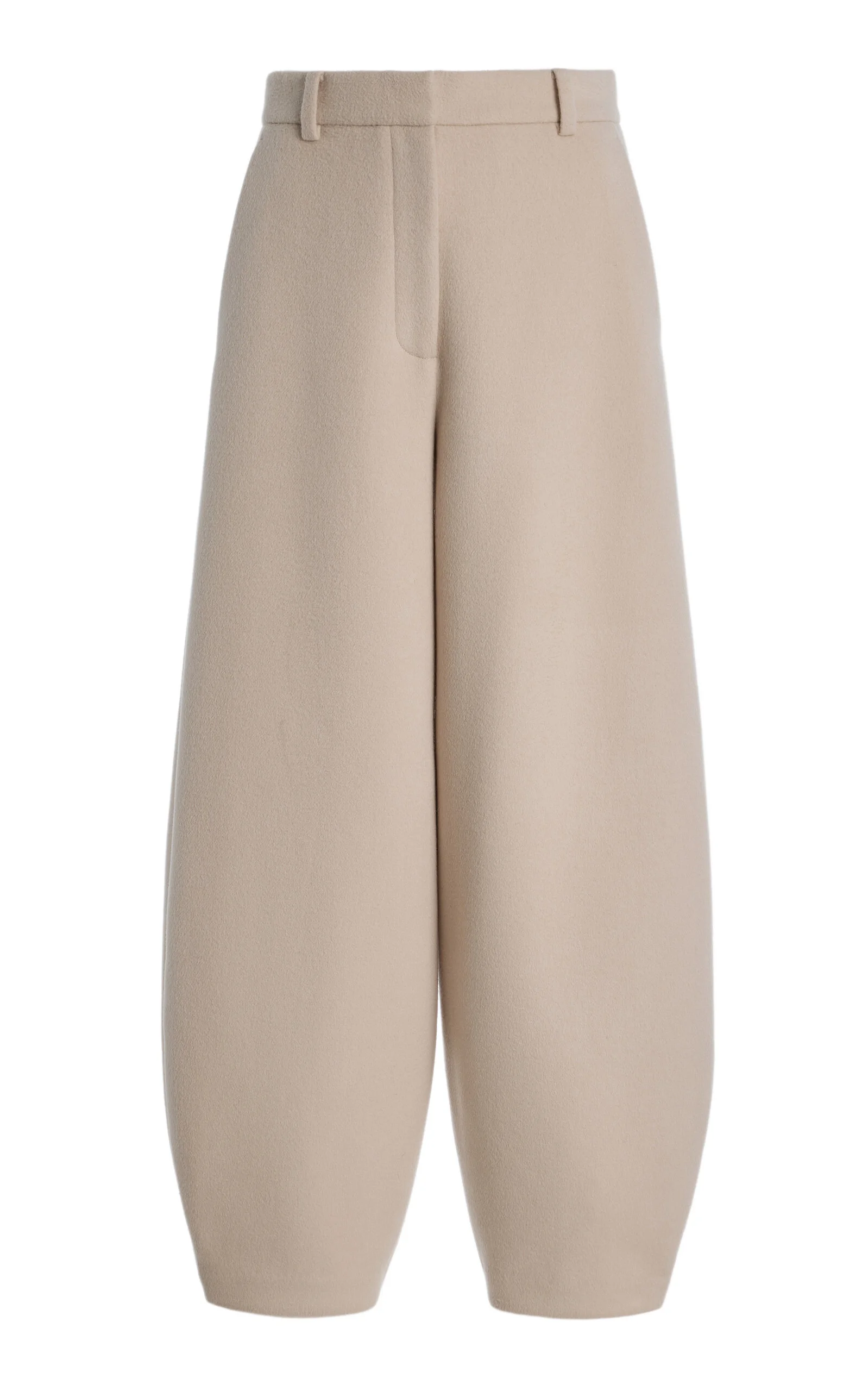 Defined by sophisticated Scandinavian minimalism and a purposeful, elevated design ethos, By Malene Birger harnesses a lineup that is effortless and elevated. Never compromising on textures and guided by integrity, each collection is designed with a vision of casual femininity. The 'Carlien' trousers tailored to a barrel silhouette from wool melton with pressed creases. They have a high waist, belt loops, side pockets, and a hook and zipper fastening. Style them with the matching hoodie. PRODUCT DETAILS - Resort '26 - Zip fastening - Composition: 100% wool - Designer color: Cream - Dry clean - Imported SIZE & FIT - Our model is wearing a size EU 32 - Model is 5'10" with a 30" bust, 24" waist, and 34" hip - Fits true to size, our fit specialist recommends taking your normal size