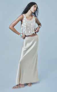 Maja Dixdotter harnesses her eye for cool, effortless and impossibly chic cuts into a lineup that’s delightfully simplistic, yet never boring. Never compromising on textures and her vision of casual femininity, each piece is a verifiable wardrobe treasure built on a timeless foundation of warm neutrals and ultra-luxe composition. PRODUCT DETAILS - Pre-Fall '25 - Slip on - Composition: 76% acetate, 24% polyester - Dry clean - Imported
