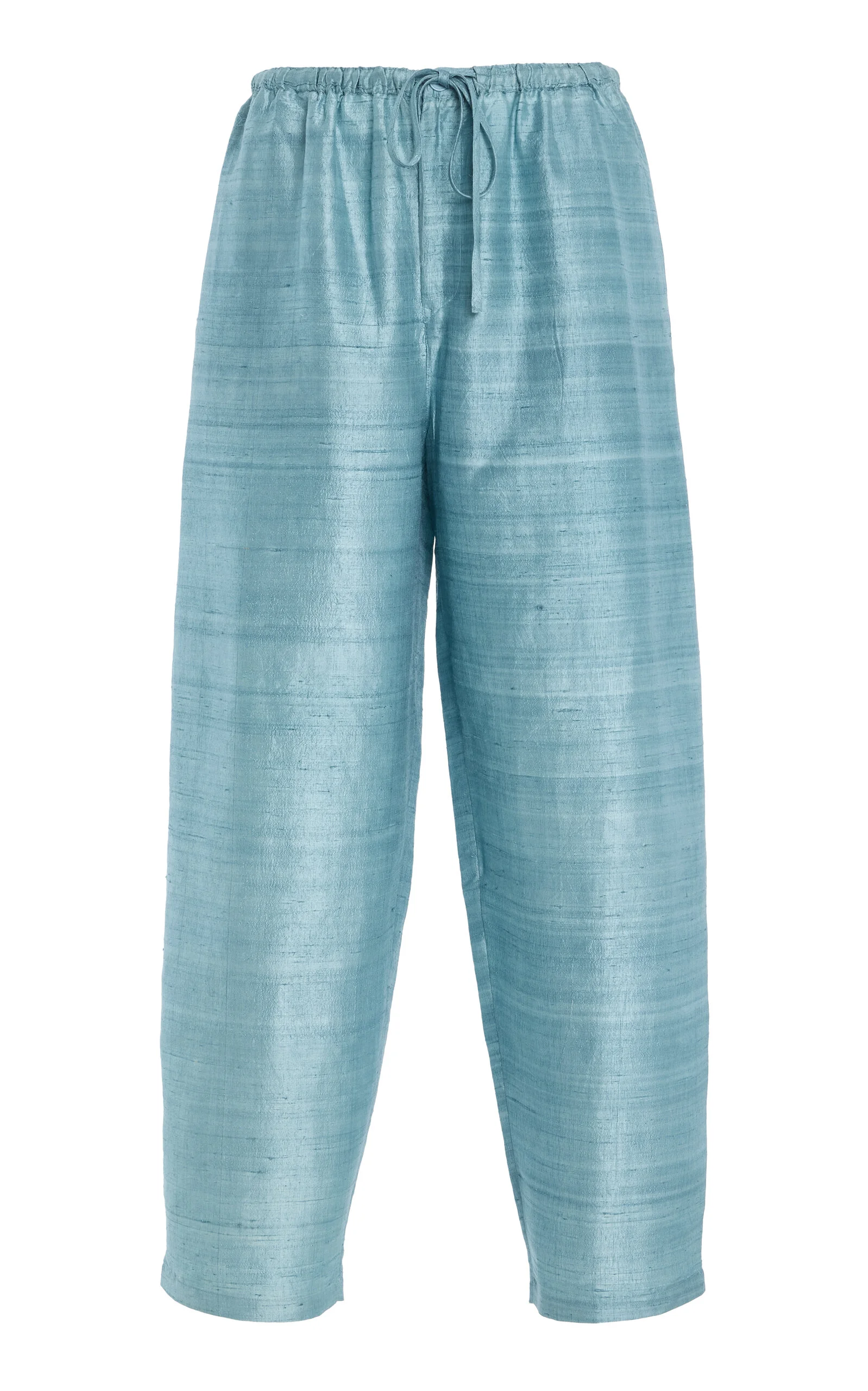 Lyria Mid-Rise Silk Wide-Leg Pants light blue