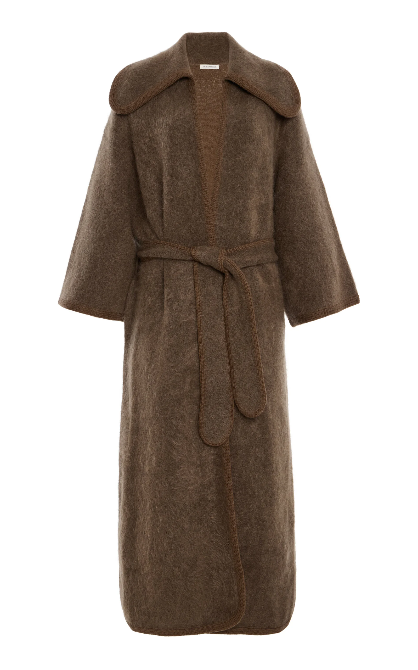 Defined by sophisticated Scandinavian minimalism and a purposeful, elevated design ethos, By Malene Birger harnesses a lineup that is effortless and elevated. Never compromising on textures and guided by integrity, each collection is designed with a vision of casual femininity. The 'Mirano' coat is a timeless winter staple. It's made from a soft, fuzzy wool into an ankle-length robe silhouette with an oversized collar, dropped shoulders, wide sleeves and a curved hem for ease of movement. PRODUCT DETAILS - Resort '26 - Tie fastening - Composition: 57% wool, 30% mohair, 11% polyamide, 2% elastane - Designer color: Chocolate Chip - Dry clean only - Imported SIZE & FIT - Our model is wearing a size Small - Model is 5'10" with a 31" bust, 23.5" waist, and 33.5" hip - Fits true to size, our fit specialist recommends taking your normal size