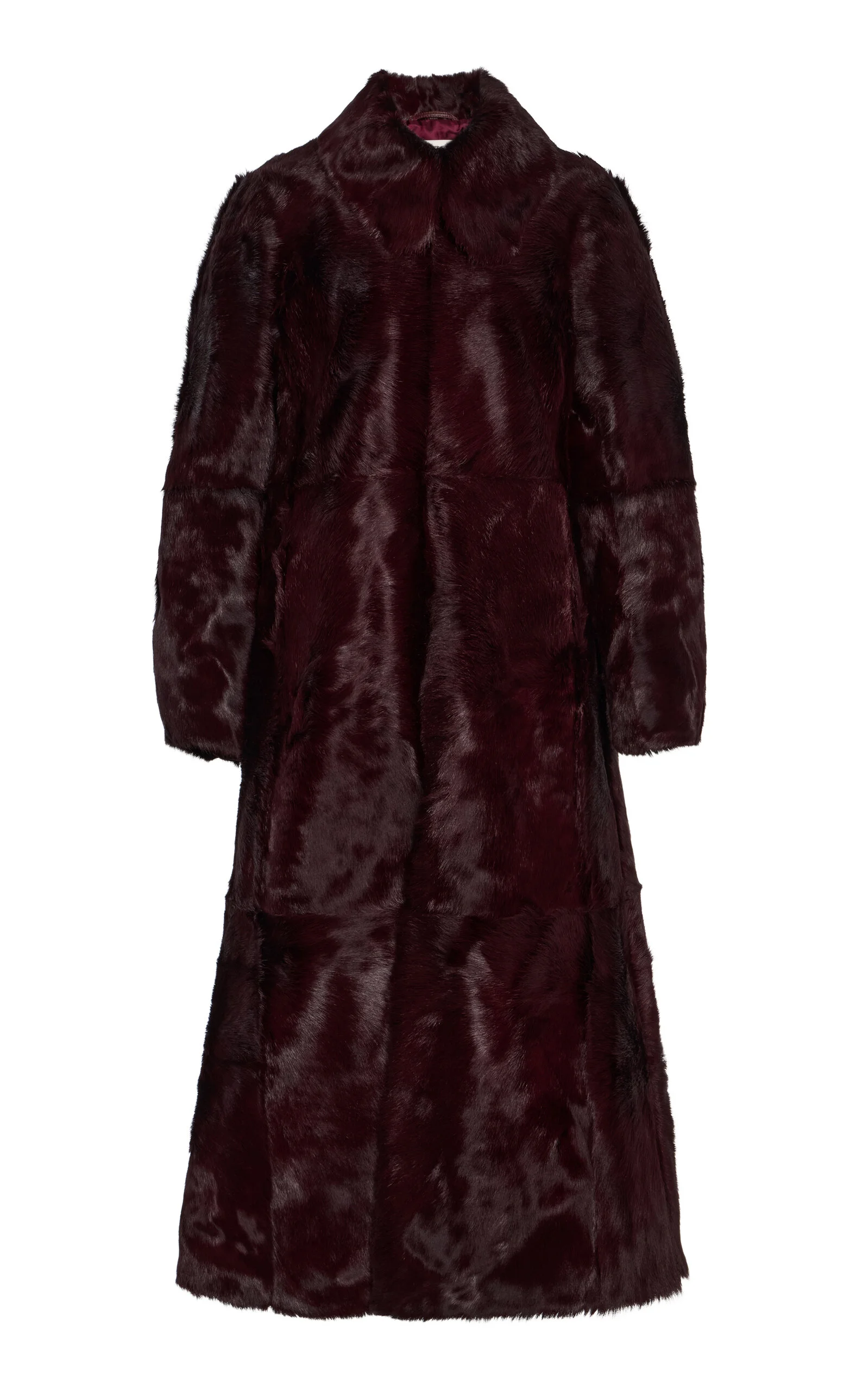 Defined by sophisticated Scandinavian minimalism and a purposeful, elevated design ethos, By Malene Birger harnesses a lineup that is effortless and elevated. Never compromising on textures and guided by integrity, each collection is designed with a vision of casual femininity. A key piece of the season, the 'Rafaia' coat in calfskin pony hair is made for the coldest days. The maxi coat is an investment piece with plenty of details — notice the zip closure, double vent, side pockets, and fully lined inner. PRODUCT DETAILS - Resort '26 - Zip fastening - Composition: 100% calf leather - Designer color: Cabernet - Dry clean - Imported SIZE & FIT - Our model is wearing a size EU 32 - Model is 5'10" with a 31" bust, 23.5" waist, and 33.5" hip - Fits true to size, our fit specialist recommends taking your normal size