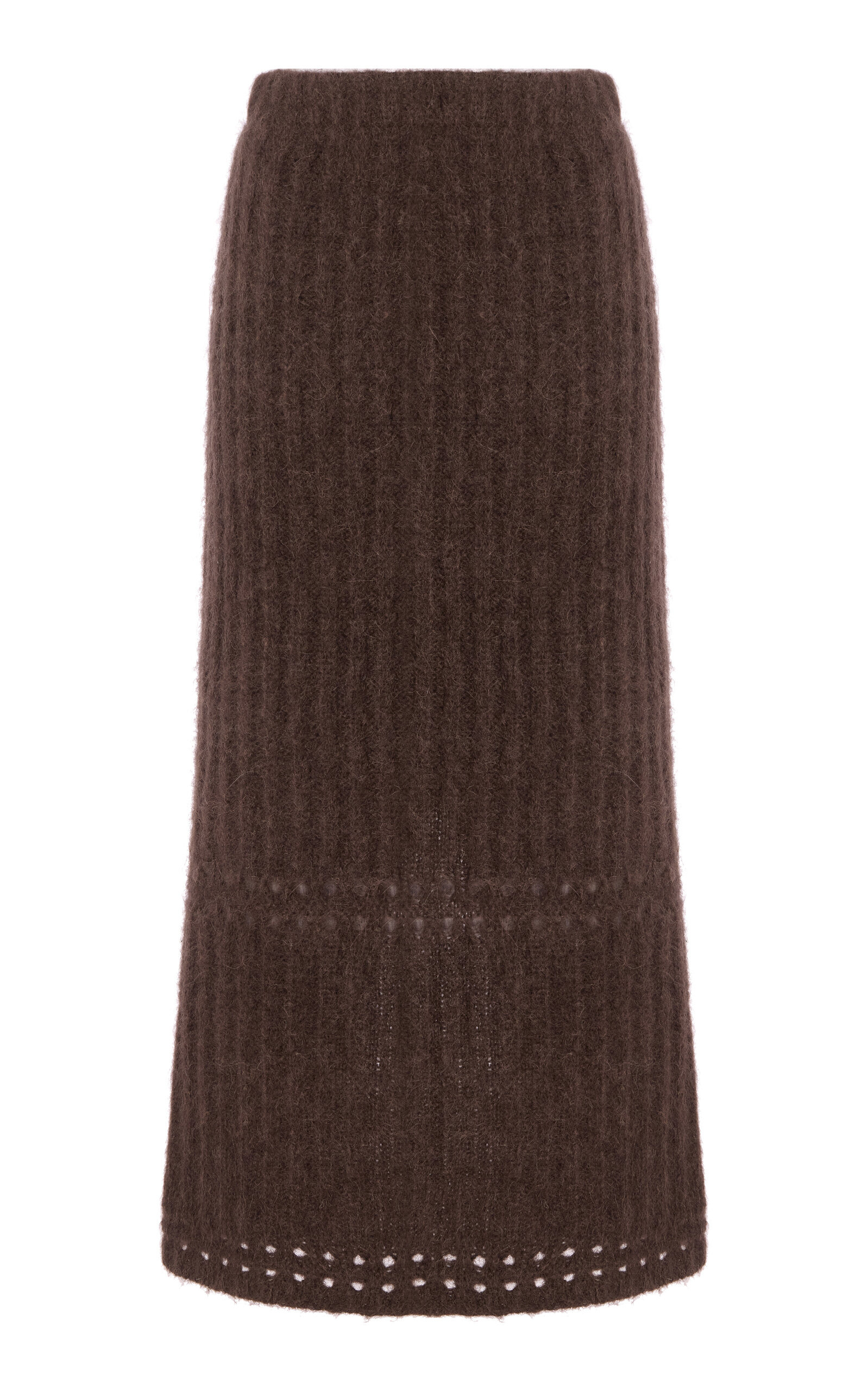SOFIA KNIT SKIRT PRODUCT DETAILS - Fall-Winter '25 - Slim fit, high rise, pencil cut silhouette with a slit at the back - Unlined - Composition: 40% mohair, 40% alpaca, 20% polyamide - Pull Over - *Dry Clean Only - Made in China