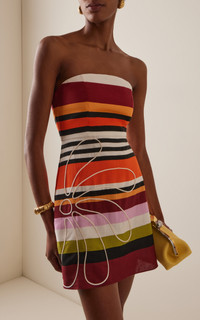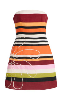 Exclusive Roma Embroidered Striped-Linen Mini Dress multi