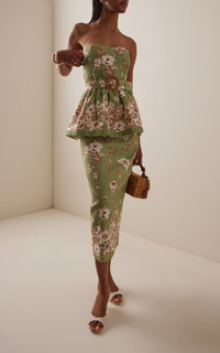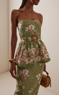 When a label comes along conceived by three women with ample industry experience, you know you’re in good hands. A case in point? Julia Workman Brown, Sasha Martin and Katie Hobbs, who use their know-how to deliver exactly what women want. The 'Tilda' is a strapless peplum top with sweetheart neckline with a smocked back for an adjustable fit. Pair with the matching skirt. PRODUCT DETAILS - Pre-Fall '25 - Zip fastening - Composition: 100% linen - Designer color: Farfella Sage - Dry clean - Imported SIZE & FIT - Designed for a slim fit