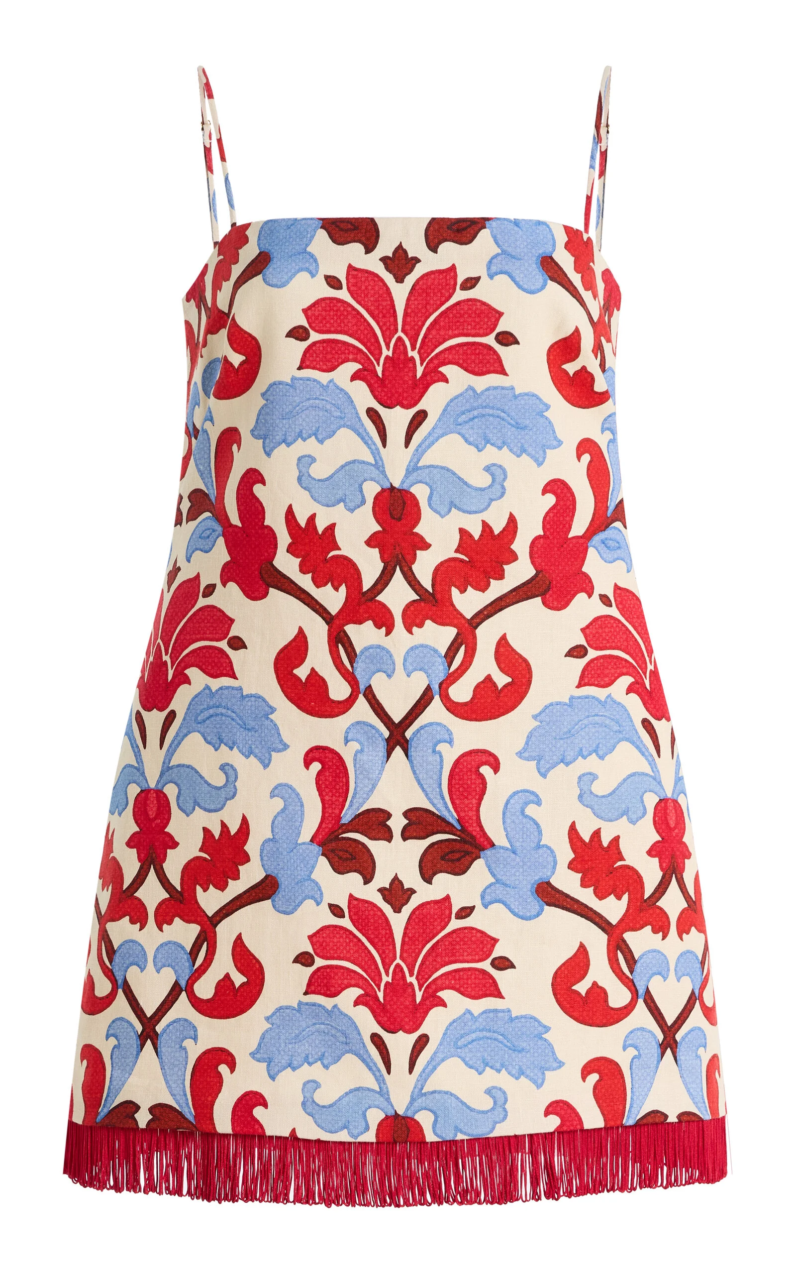 When a label comes along conceived by three women with ample industry experience, you know you’re in good hands. A case in point? Julia Workman Brown, Sasha Martin, and Katie Hobbs, who use their know-how to deliver exactly what women want. Designed for a fit and flare look, 'Valencia' is a mini shift dress with adjustable spaghetti straps and a fringed hem. PRODUCT DETAILS - Resort '26 - Zip fastening - Composition: 100% linen; Lining: 100% cotton voile - Designer color: Fleur Crest Ivory - Dry clean - Imported SIZE & FIT - Our model is wearing a size US 2 - Our model is 5'10" with a 30" bust, 24" waist, and 34" hip
