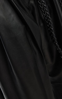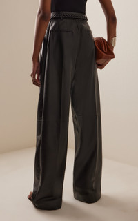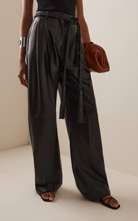 PRODUCT DETAILS - Regular fit, mid rise, belt loops, braided belt at waist, pockets, wide leg - Zipper fastening - Composition: 100% Leather - Color: Black - Dry Clean Only - Made In: India - Resort '26