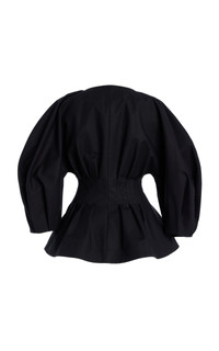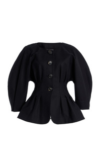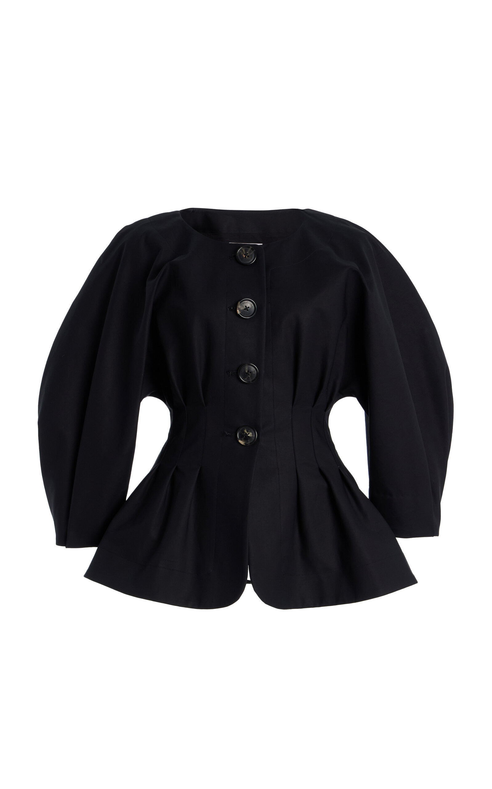 PRODUCT DETAILS - Balloon sleeve, nipped waist, crew neck, button-front - Button fastening through front - Lined - Composition: 95% Cotton, 5% Elastane - Color: Black - Dry clean only - Pre-Fall '25
