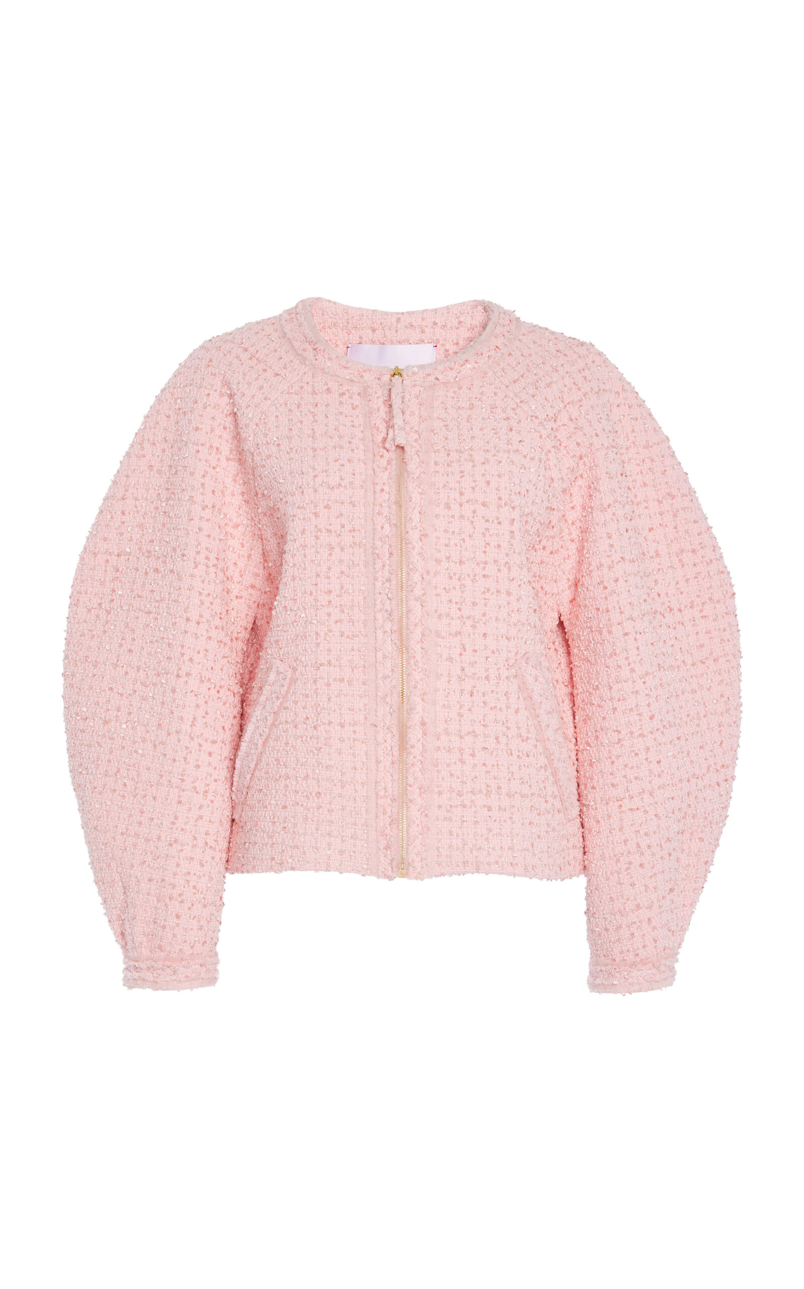 PRODUCT DETAILS - Relaxed bomber shape, zip front, balloon sleeve - Zip fastening through front - Lined - Composition: 48% Cotton, 32% Polyester, 20% Polyamide - Color: Blossom - Dry clean only - Pre-Fall '25