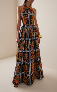 Floral-Print Halterneck Ball Gown