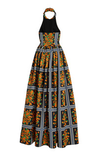 PRODUCT DETAILS - Halter neck, fitted bodice, full ball skirt, maxi hem - Concealed zip fastening - Unlined - Composition: Crepe - Color: Black Multi - Dry clean only - Pre-Fall '25