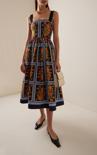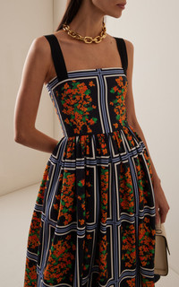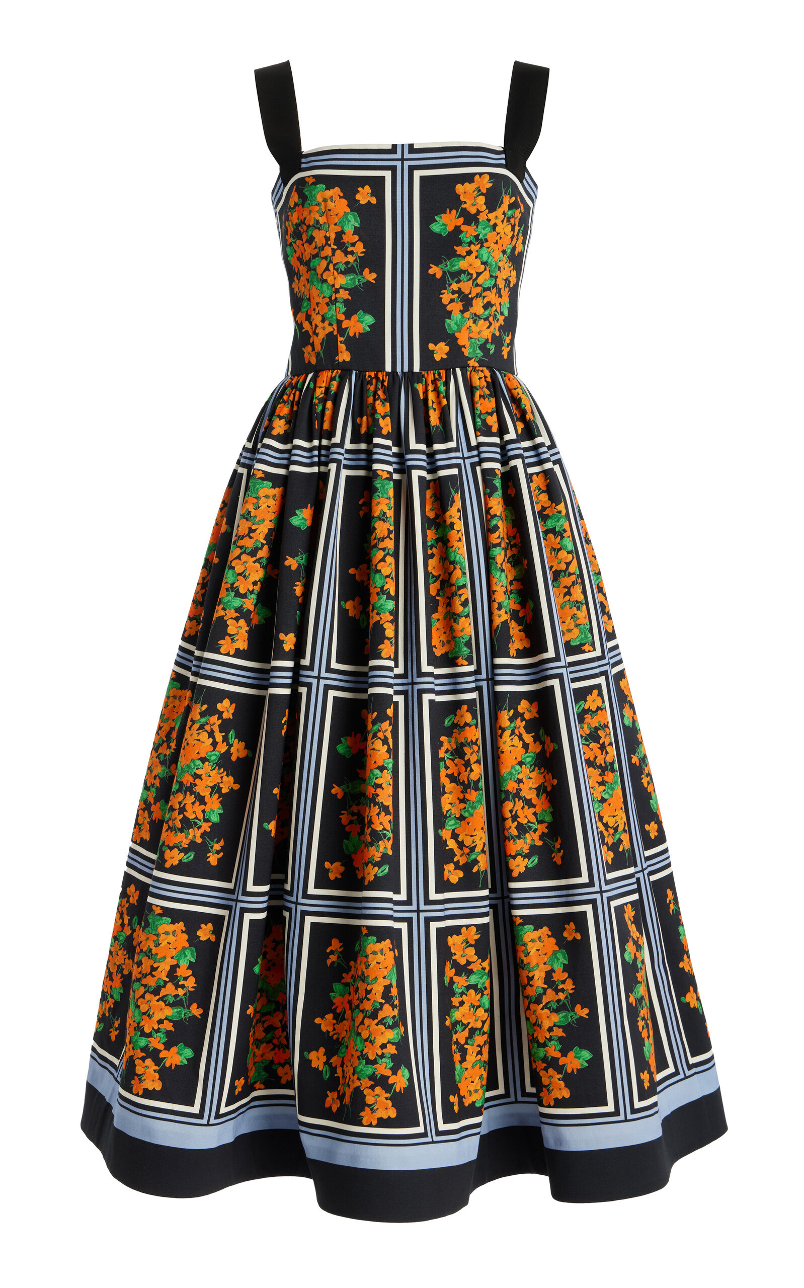 PRODUCT DETAILS - Sleeveless, square neck, A-line shape, midi hem - Concealed zip fastening - Unlined - Composition: Crepe - Color: Black Multi - Dry clean only - Pre-Fall '25