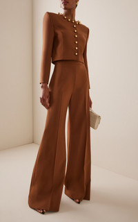PRODUCT DETAILS - High-waisted, wide-cut leg - Concealed zip and hook fastening - Unlined - Composition: 97% Virgin Wool, 3% Elastane - Color: Nutmeg - Dry clean only - Pre-Fall '25