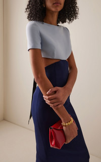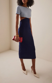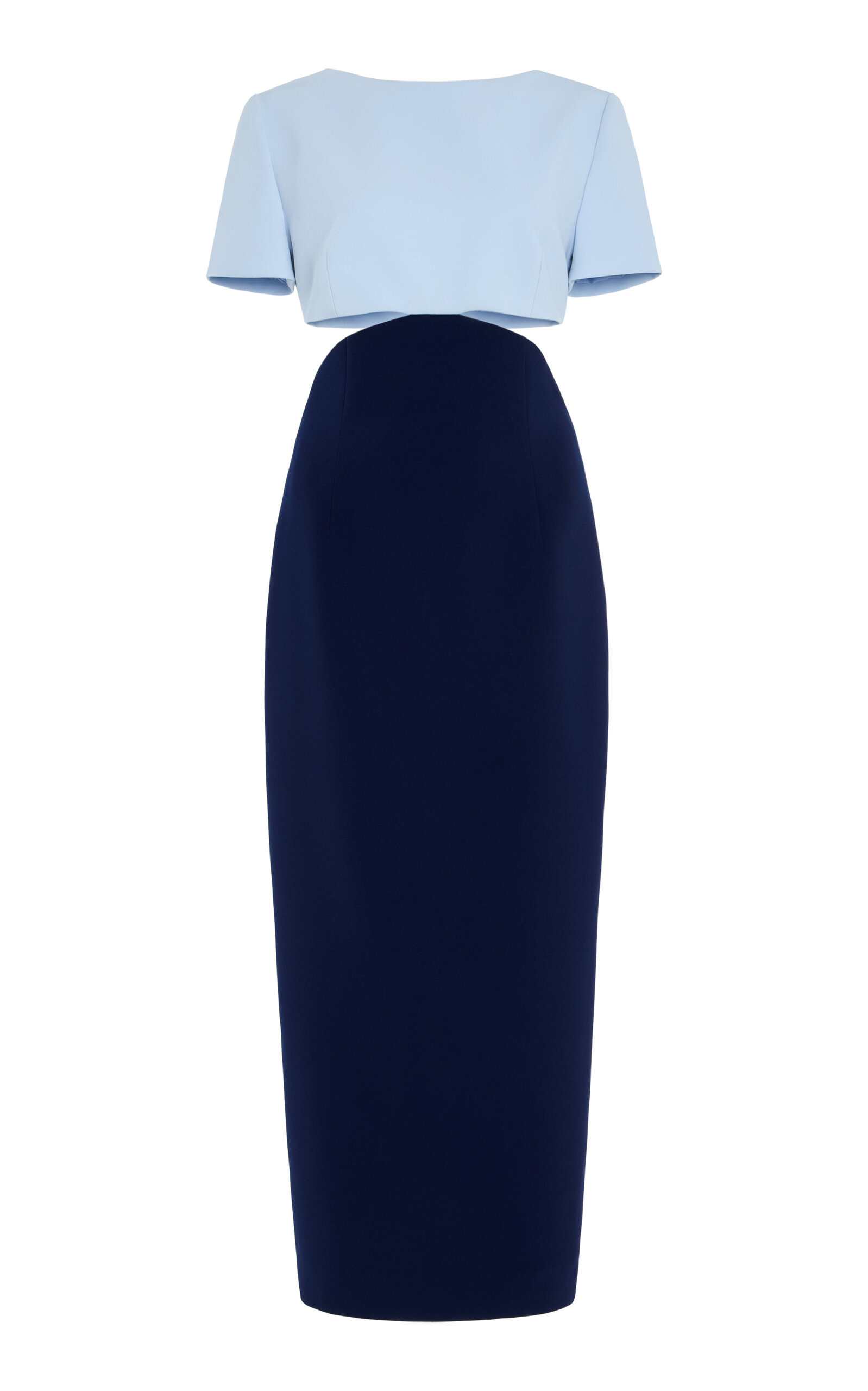 Exclusive Riviera Open Back Two-Tone Crepe Midi Dress blue