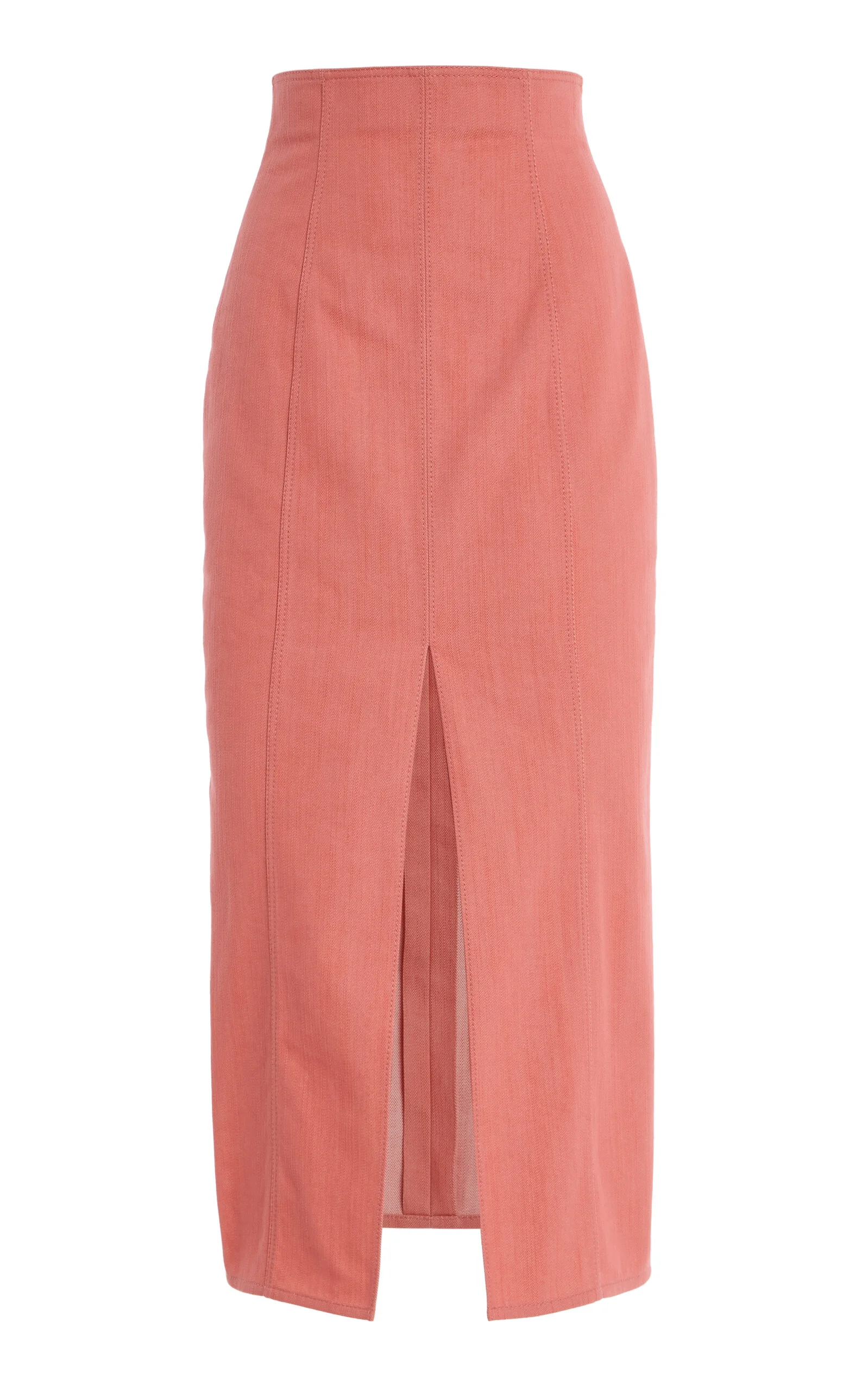 PRODUCT DETAILS - Slim fit, high rise, front center slit - Zipper fastening - Composition: 58 Cotton, 42% Polyester - Color: Sunset - Dry Clean Only - Made In: Italy - Resort '26