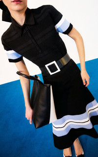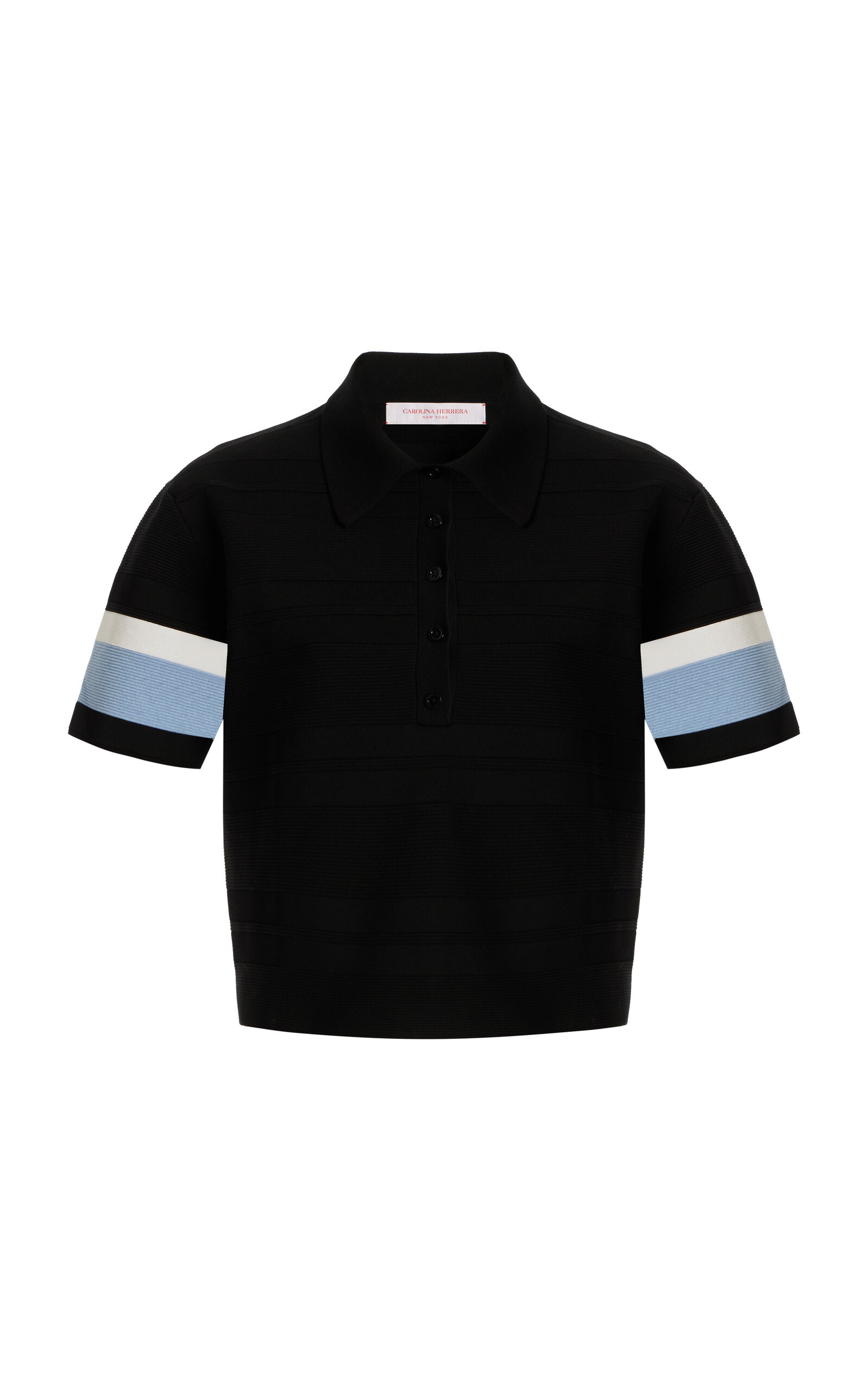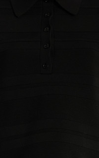 PRODUCT DETAILS - Short sleeve, buttoned collar, slim fit, ribbed trim - Slip on - Unlined - Composition: 38% Viscose, 38% Cotton, 21% Polyamide, 3% Elastane - Color: Black Mult - Dry clean only - Pre-Fall '25