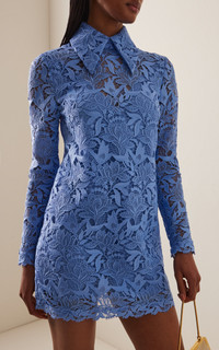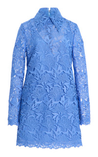 Tulip-Embroidered Lace Mini Dress